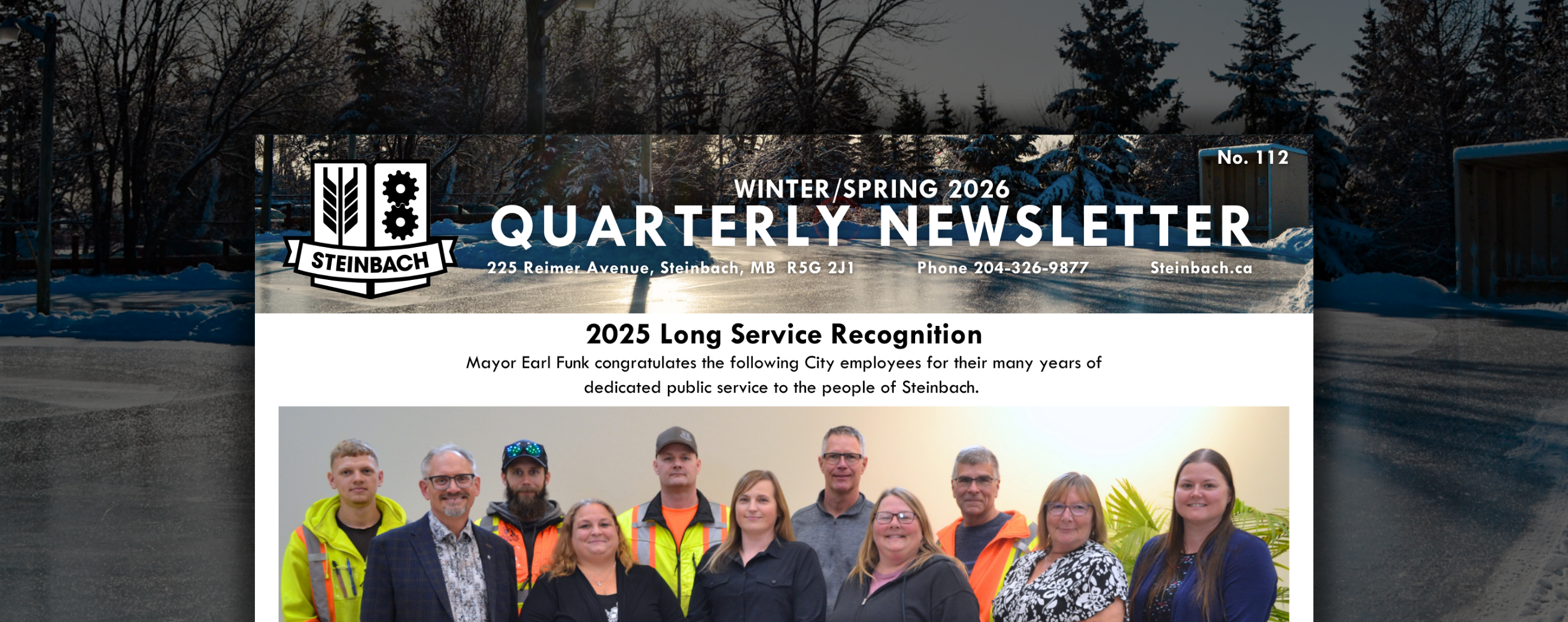 The City of Steinbach’s 2026 Winter- Spring Newsletter (No. 112) has been sent out to residents, alongside quarterly utility bills.