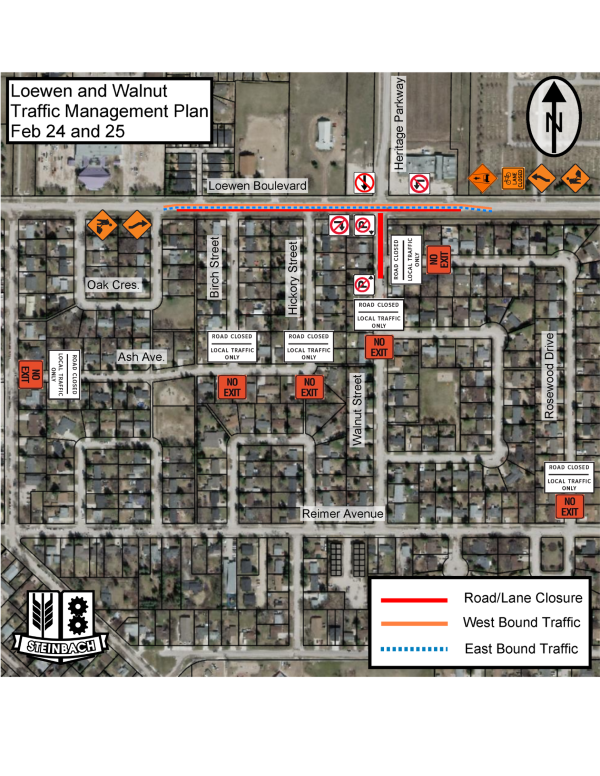Please take note of the following road & lane closures on Loewen Boulevard and Walnut Street scheduled for Monday, February 24th to Tuesday, February 25th to complete sewer maintenance.